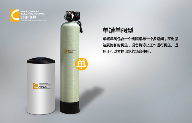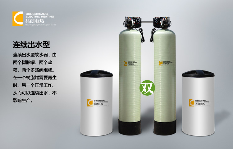 二、工作原理 含有硬度的原水通过离子交换树脂,阳离子交换树脂巨大的表面积,可使水中的钙镁离子与树脂中的钠离子发生置换反映,从而保证出水硬度小于0.03㎜ol/L。其化学反应为2RNa+Ca2+(Mg2+)=R2Ca(Mg)+2Na2+反应结果:水中的钙、镁离子进入树脂中,树脂中的钠离子进入水中,从而起到软化的结果。当钙镁型树脂(即失效树脂)达到一定程度,出水硬度超标时,即进行失效树脂的再生工作。利用较高浓度的氯化钠溶液通过失效的树脂,使失效的树脂重新恢复至钠型树脂。其化学反应为:R2Ca+2Na+=2RNa+Ca2+。 整个再生过程包括:反洗——松动树脂层,吸盐再生——发生交换反应,冲洗——将化学放应交换下来的钙、镁离子冲洗干净。 三、使用方式 单罐——适用于一天之内有规律设备,能够在树脂再生期间不给水,若配有2-3小时用水量的水箱,可实现不间断供水。 双罐同时供水——可实现连续不间断供水,交错再生,再生期间单罐供水,供水量减少,并可人为设定再生时间。双罐一用一备——实现连续不间断供水,另一罐再生或备用,并可实现手动转换。 叁罐系统——连续不间断供水,电脑控制,错开再生。适用于水量较大的设备。