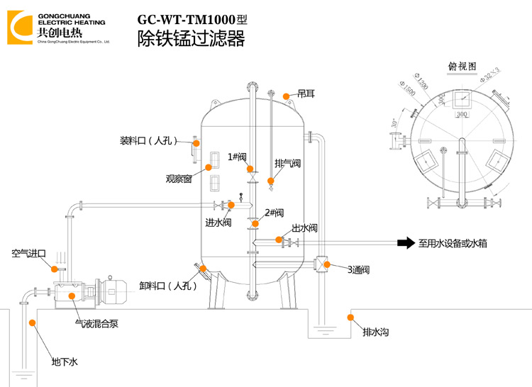 无需曝气池,无需反洗泵的除铁装置--GC-WT-TM1000型曝气除锰铁过滤器