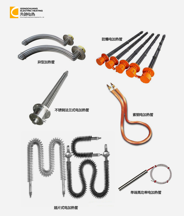 电压可设计为:12-660V功率为:50W-20KW材质有:10#铁、T4铜、1Cr18Ni9Ti不锈钢、Ti钛等。规格有:U型、W型、异形、带散热翅片电加热管、防爆电加热管,辐射管等,可定制非标电加热器。