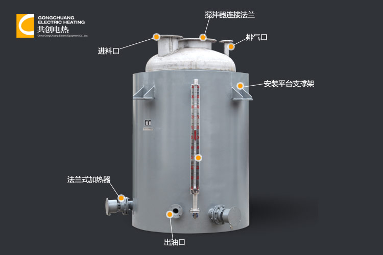 三、加热装置 GC-JBG-1型电加热夹套搅拌罐加热温度为180℃,加热方式采用导热油介质直接加热。夹套上直接安装电加热管,使导热油加热到所需温度(温度可根据实际情况调节)。也可根据用户要求增加盘管等形式进行加热或冷却。