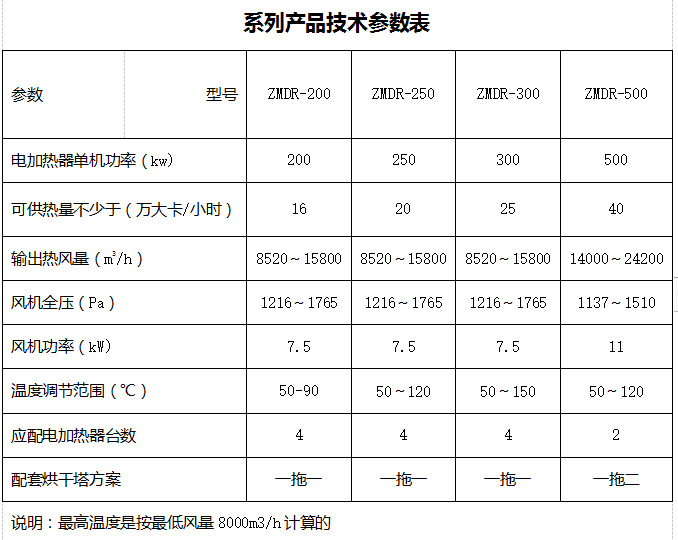 风道加热器概述风道加热器主要用于风道中的空气加热,规格分低温、中温、高温三种形式,在结构上的共同之处是采用了用钢板支撑电热管以减少风机停止时电热管的振动,在接线盒中都装有超温控制装置。低温型可直接安装在风道上,而中温型、高温型由于结构上的不同,在通道外壁至加热器接线盒夹有100mm 厚的保温材料,一方面减少整个通道的对外散热,另一方面也减少了接线腔内的温度。